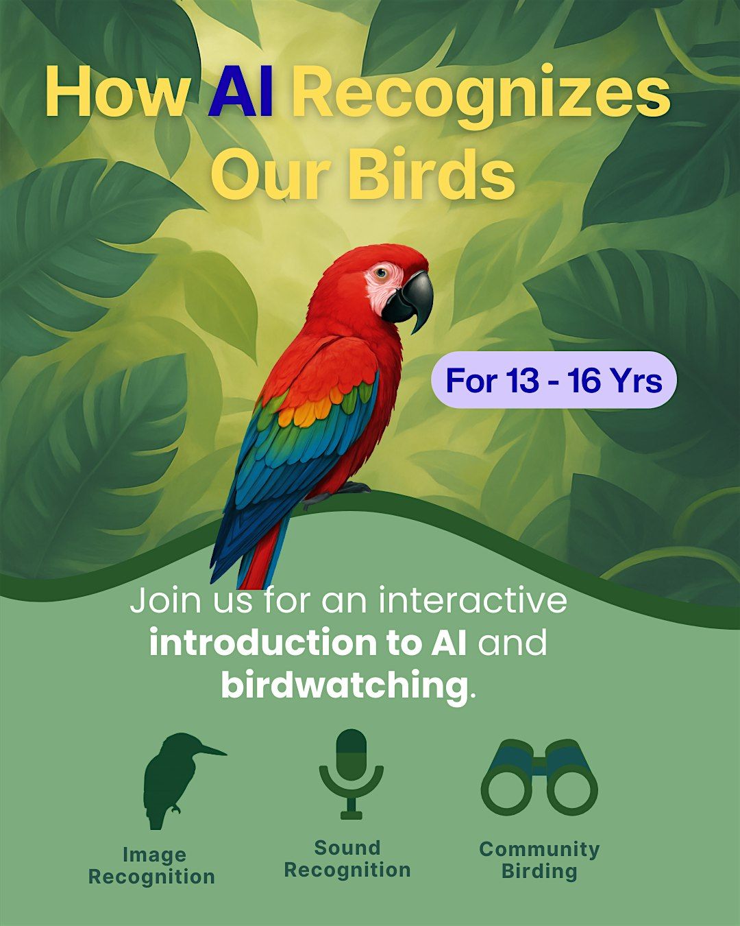 Join us for a hands-on workshop that brings together birding and AI learning. Teens will discover how artificial intelligence identifies birds through photos and sounds, learn to use the Merlin Bird ID app, and build their own simple AI model using Google Teachable Machine.