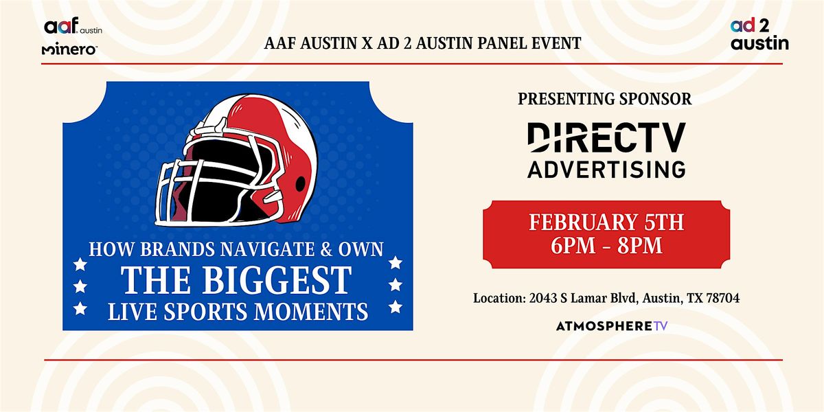 Thank you to DIRECTV for sponsoring this event and helping bring this conversation to life! DIRECTV is a leading provider of live sports and premium entertainment, delivering fans unmatched access to the biggest games, leagues, and moments across screens. As a brand that has consistently shown up around the Super Bowl and created memorable live-sports campaigns, DIRECTV is a proud sponsor for this conversation on how brands navigate and own the biggest live sports moments.