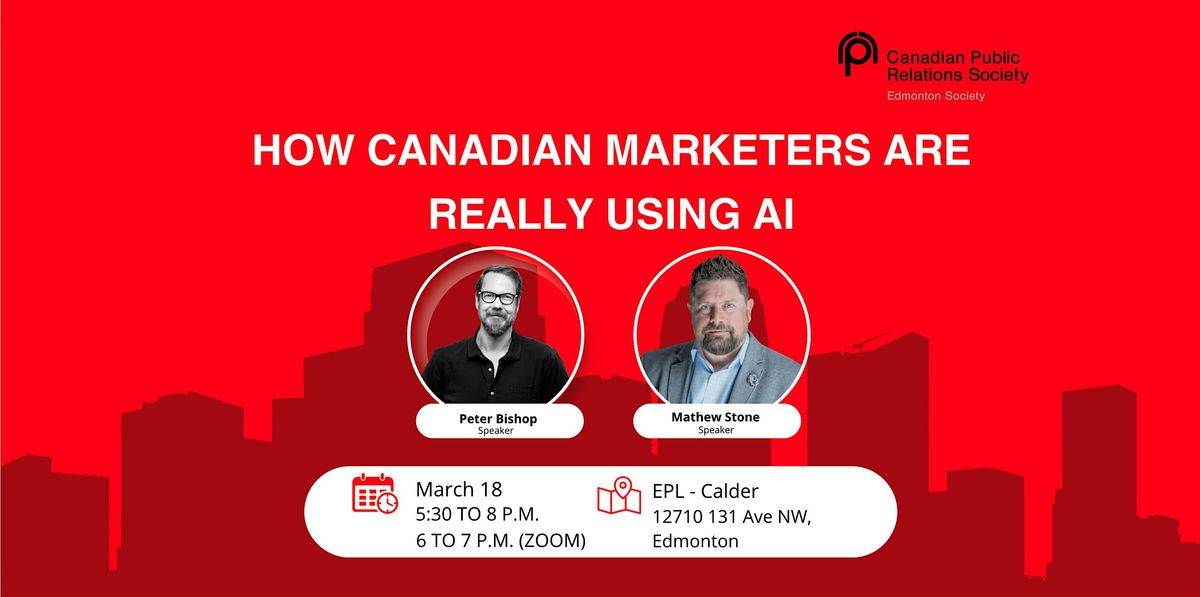 Join CPRS Edmonton, in partnership with ZGM Modern Marketing and Stone-Olafson, for a discussion informed by The AI Marketers Report. This session will explore insights from Canadian research examining how marketers and communicators are engaging with AI tools and technologies.Speakers Peter Bishop, Chief Innovation Officer at ZGM Modern Marketing, and Mathew Stone, Co-founder of Stone-Olafson, will share perspectives from the report and discuss what the findings suggest for professionals working across marketing and communications.The session is designed to provide context and informed perspective for practitioners who want to better understand how AI is being approached within the Canadian marketplace.
