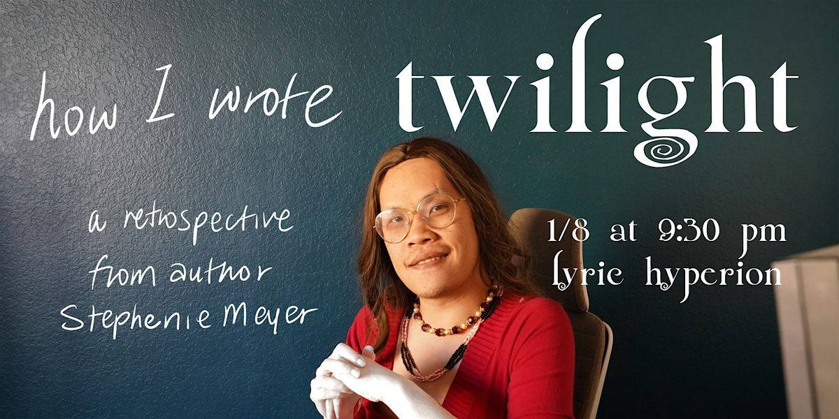 The story you love in a way never seen before, with backstory you don't want to miss. HOW I WROTE TWILIGHT is Stephanie Meyer's intimate, high-production look at the origins of the worldwide vampire phenomenon featuring Edward, Bella, AND Jacob. Through re-enactments, clown bits, Meyer (Kevin Chu) will guide you through her thoughts, memories, and feelings that inspired the series that swept the nation.