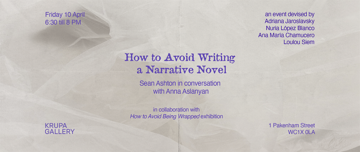 How to Avoid Writing a Narrative Novel: Sean Ashton in conversation with Anna Aslanyan