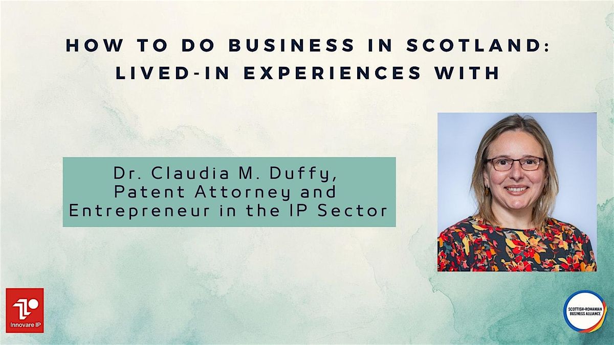 That’s why we’re excited to welcome Dr. Claudia M. Duffy, European Patent Attorney and entrepreneur, to share her lived experience and practical insights on doing business in Scotland.