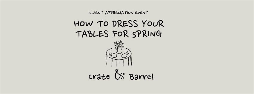 We’ll meet at Crate & Barrel at 2:00 PM for a special demonstration on creating beautiful spring tablescapes for the season. There will also be light refreshments to enjoy while we gather and connect.