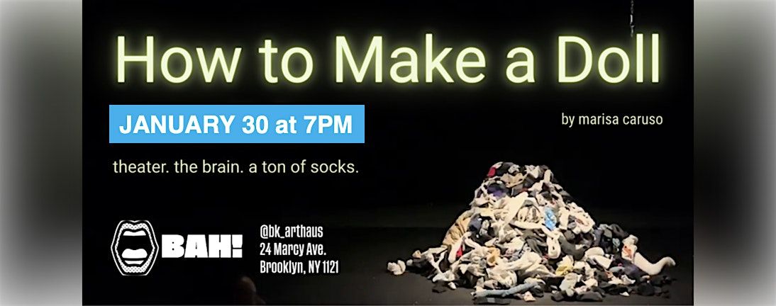 A picture of mental health in America emerges through the story of a mother-daughter relationship, the mystery of a changing brain and the question of how to communicate when words fall short. Where science meets art and humor meets grief, How to Make a Doll is an interdisciplinary solo blending research, memoir, and a healthy dose of absurdity. Through video, sound, text, and puppetry, this performance explores dementia, family, and the transformative power of making something by hand.