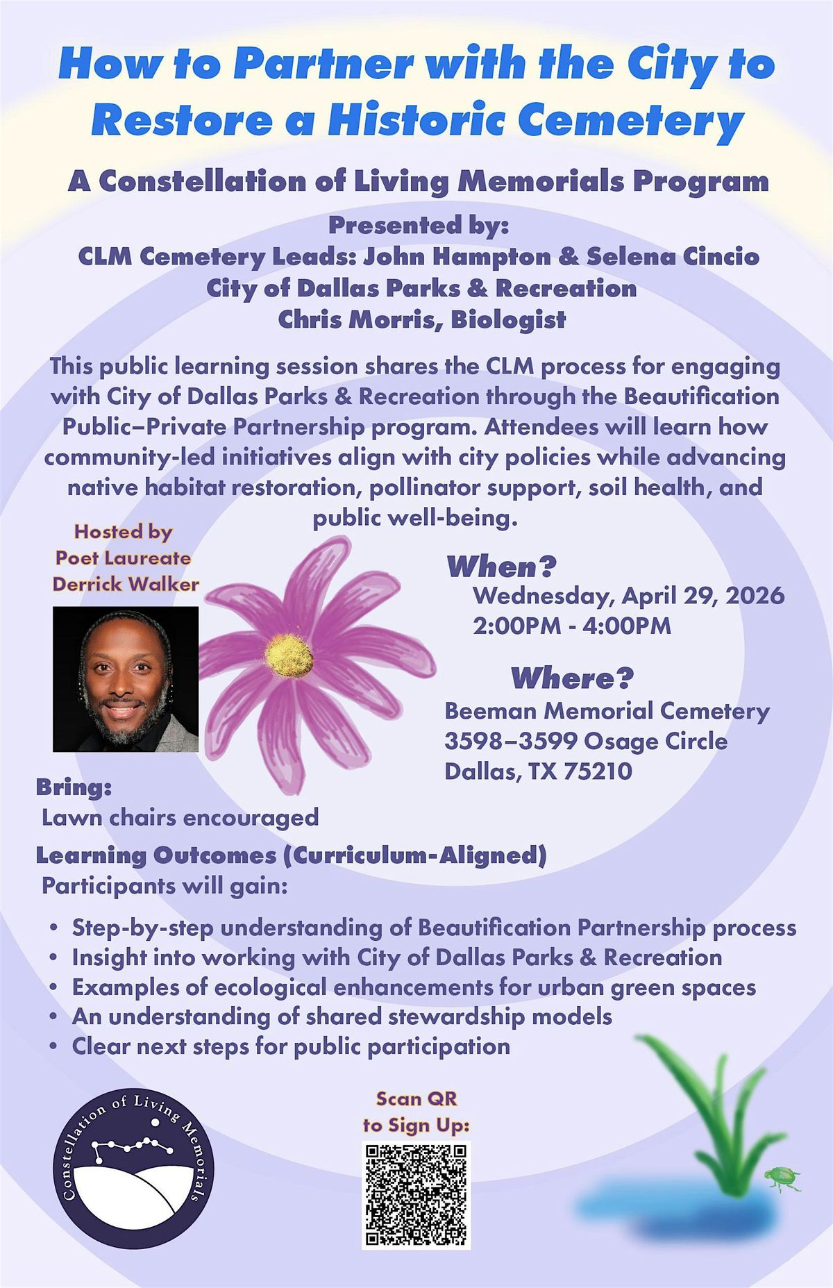 Learn how to partner with city agencies like Dallas Parks & Recreation to restore historic cemeteries and support urban habitats.