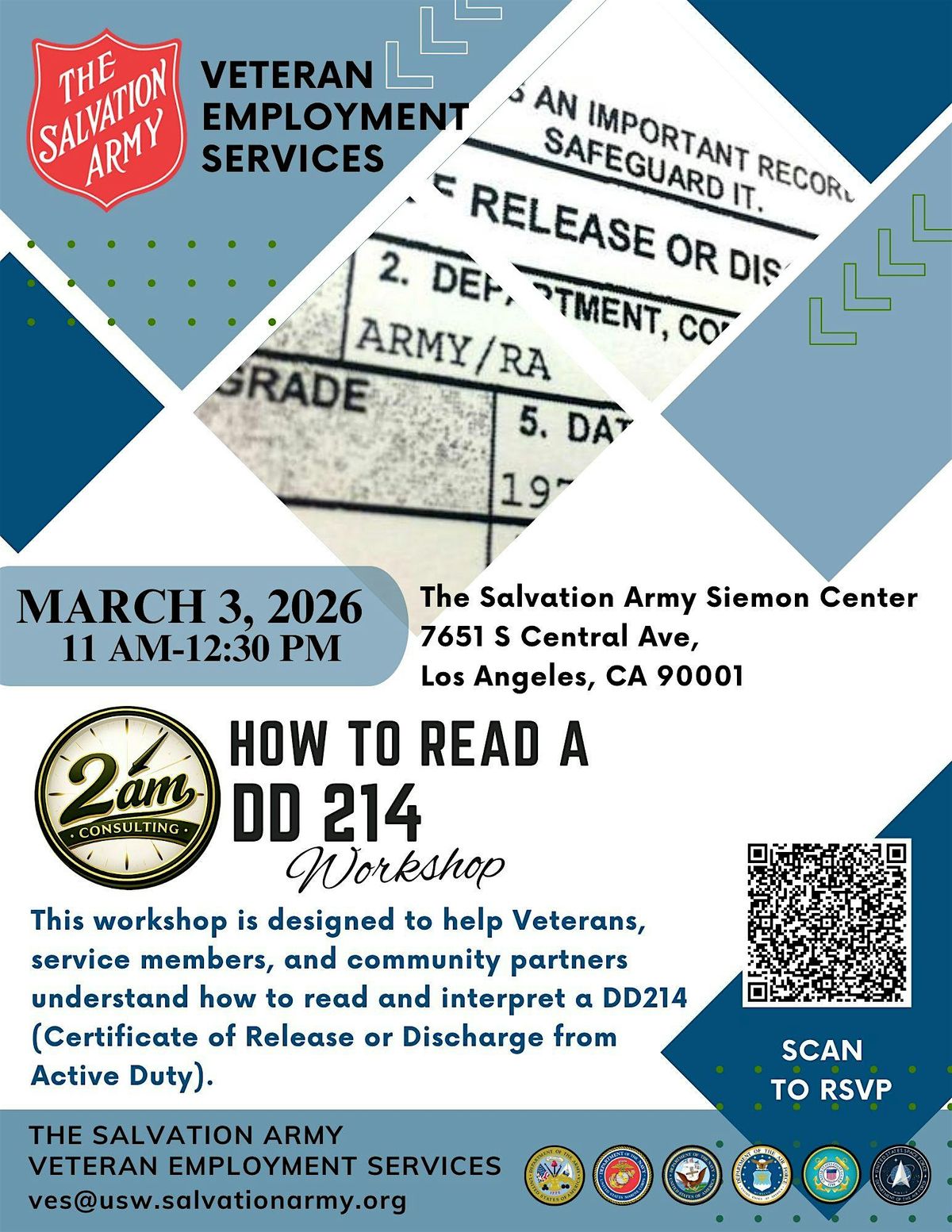 Join us in person for a friendly, hands-on workshop designed to help veterans better understand one of their most important military documents the DD214.