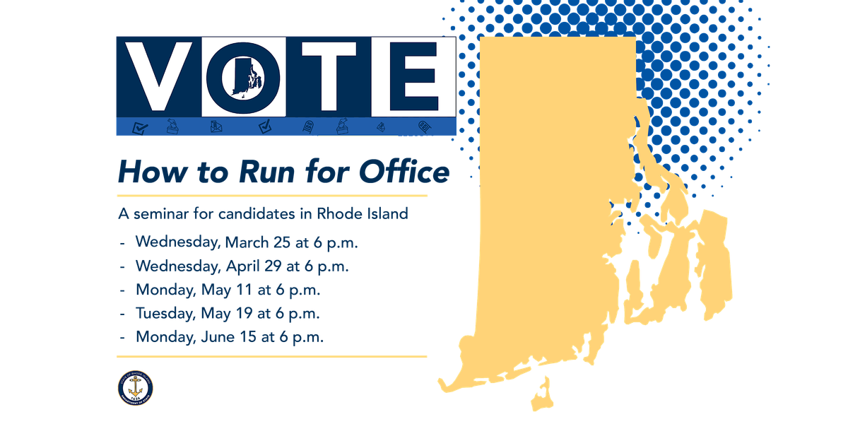 The Rhode Island Department of State Elections Division, in partnership with the Rhode Island Board of Elections, is pleased to offer a How to Run for Office seminar for those interested in running for office in 2026. This seminar will cover important calendar highlights and an overview of ballot qualification, campaign finance, and more. Join us in person or online!