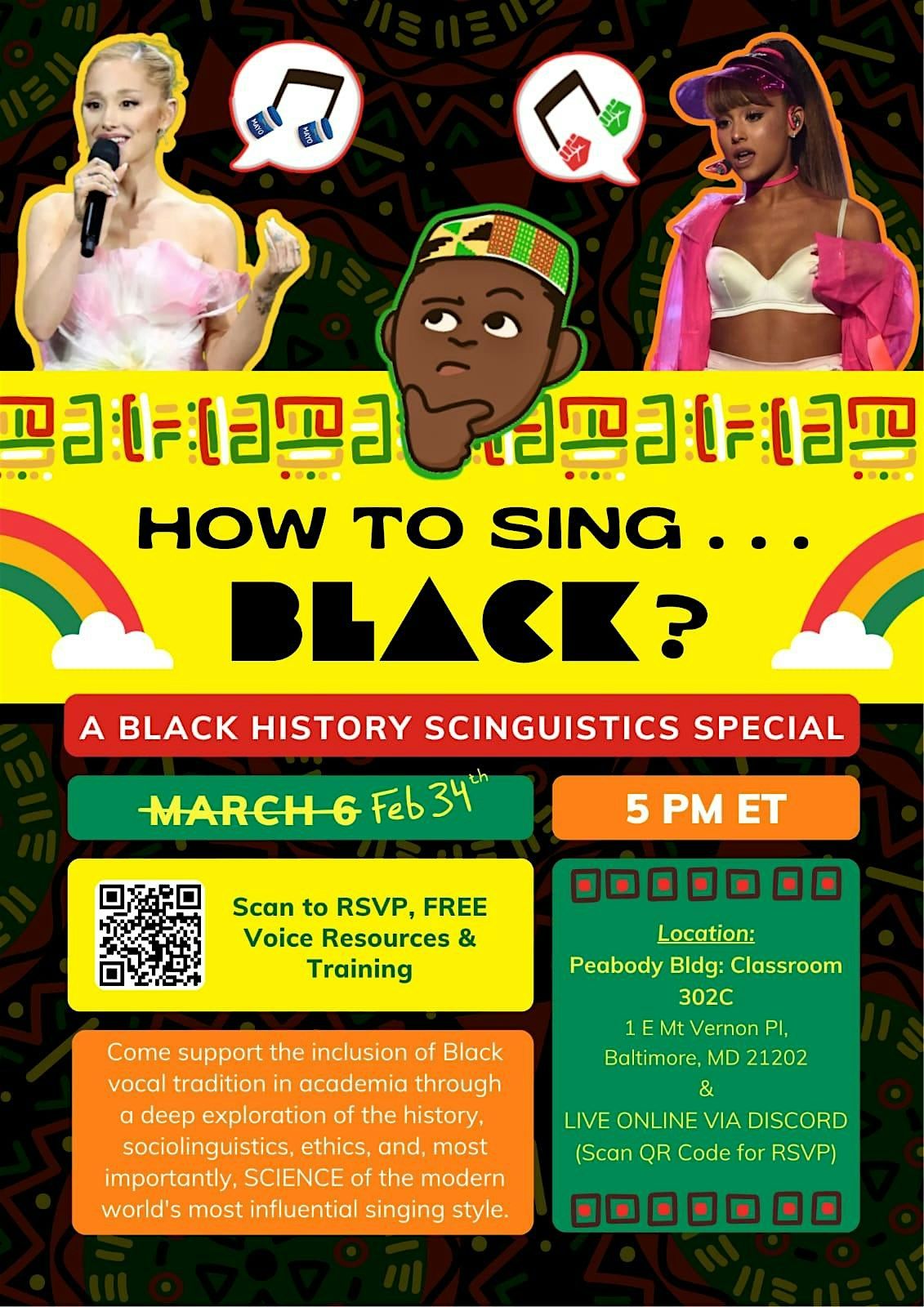Come support the inclusion of Black vocal tradition in academia through an exploration of the history, sociolinguistics, ethics, and, most importantly, SCIENCE of the modern world's most influential singing style.