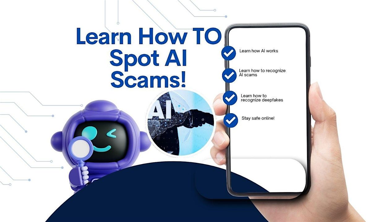 Want to learn how to spot those tricky AI scams before they get you? Join us for a free workshop designed for adults! We will introduce the basics of artificial intelligence and how it appears in everyday life. Participants will also learn how to recognize AI-related scams, deepfakes, and other warning signs to stay safe online.