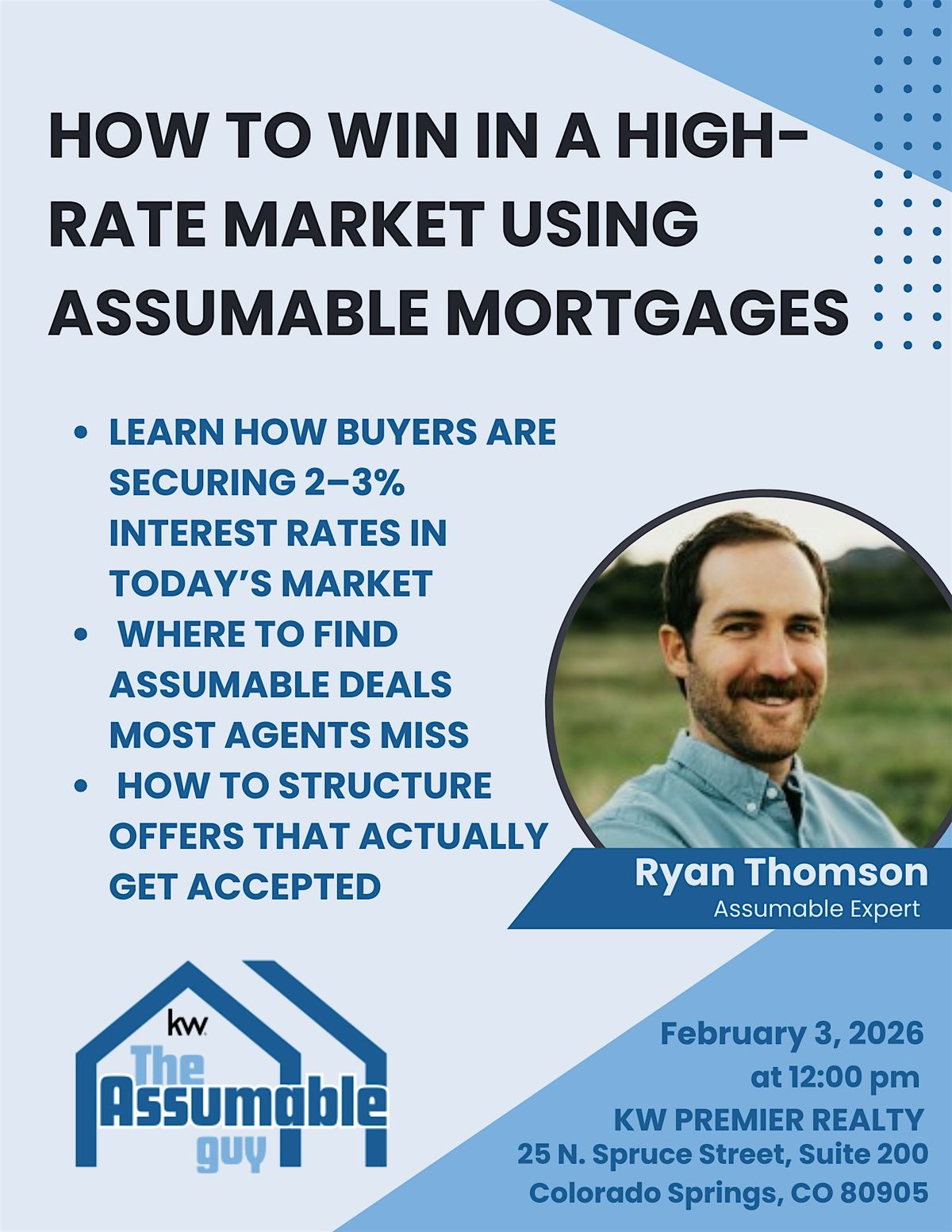 In today’s high-interest-rate market, assumable mortgages are one of the most powerful (and overlooked) tools available. Join Ryan Thomson, “The Assumable Guy,” for a practical, strategy-driven class on how buyers are securing 2–3% interest rates right now.