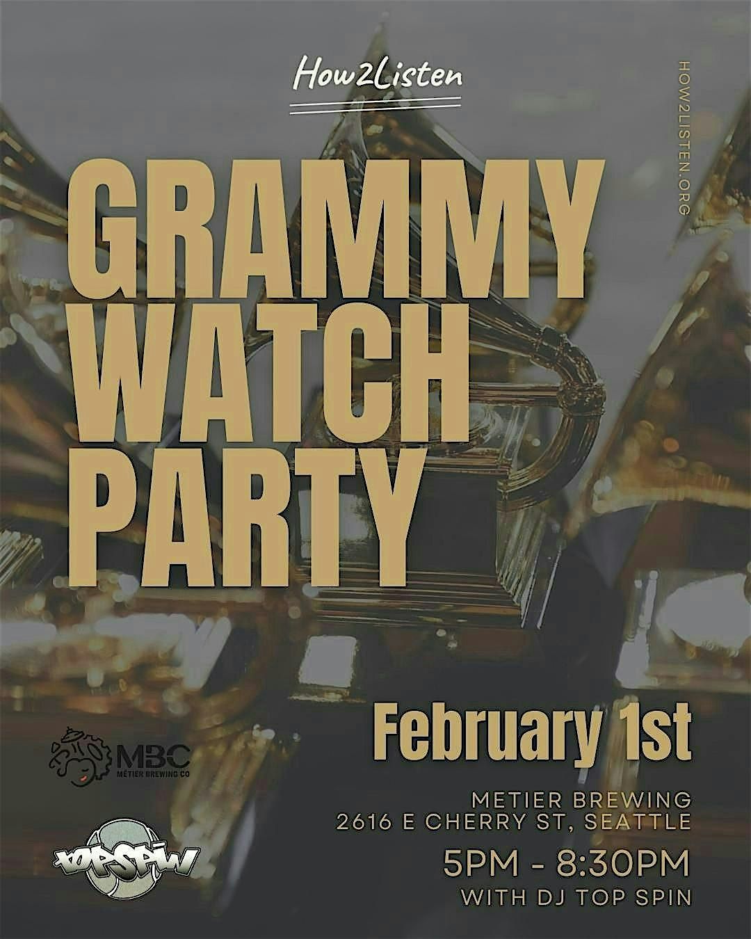 Join How2Listen for a Grammy Watch Party at Métier Brewing. Come through for good music, good people, and a shared love for music.