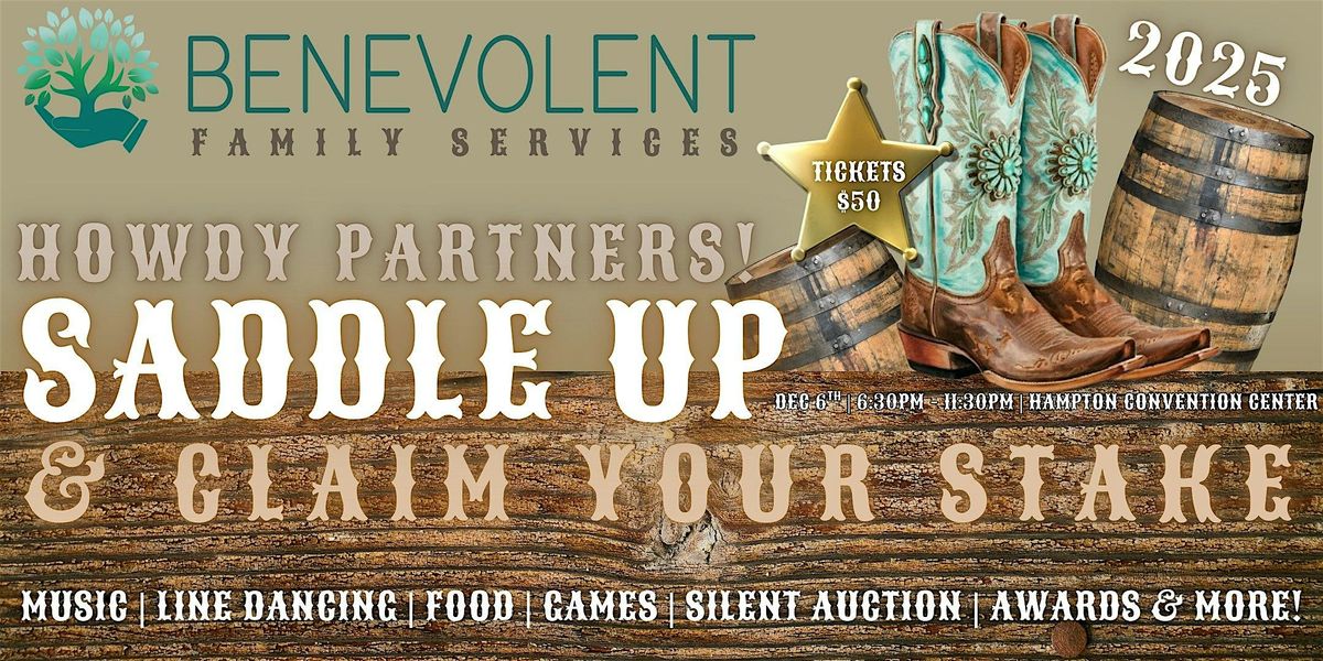 Saddle up, Partners — Benevolent Family Services is rolling out the red carpet (and a little hay) for our end-of-the-year celebration! ✨We’re tipping our hats to the hard work, resilience, and heart of our community with a semi-formal urban cowboy/cowgirl gala. Semi-formal Western attire is encouraged, but not required — think boots, hats, sequins, and fringe.