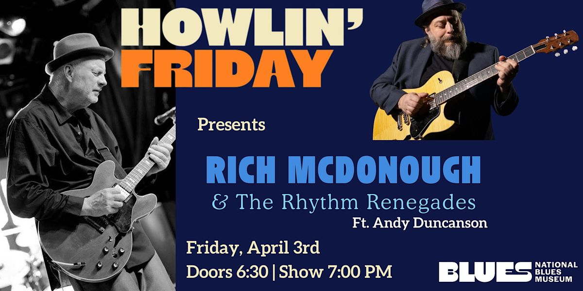 Feel the grit, groove, and guitar fire of Howlin’ Friday as Rich McDonough & The Rhythm Renegades take the stage with special guest Andy Duncanson for a night of deep blues and high-energy soul.