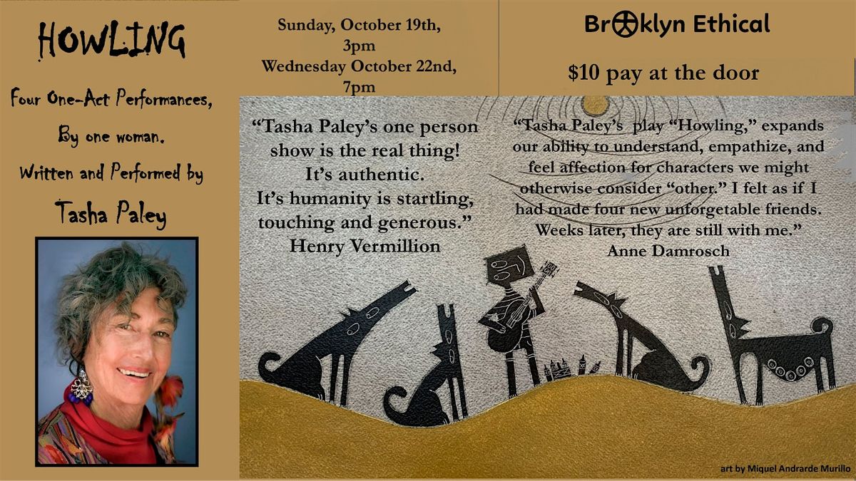 Join us for Howling: A One-Woman Show in Four Acts written and performed by Tasha Paley. Through poetry, monologue, and movement, Paley gives voice to four distinct characters—each howling with longing, humor, and truth. This deeply personal and imaginative performance explores the human spirit’s resilience, the hunger for connection, and the beauty that emerges from vulnerability.