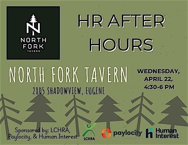 April 22 - 4:30pm-6pm at North Fork Tavern in Eugene. This is a great opportunity to meet HR professionals!