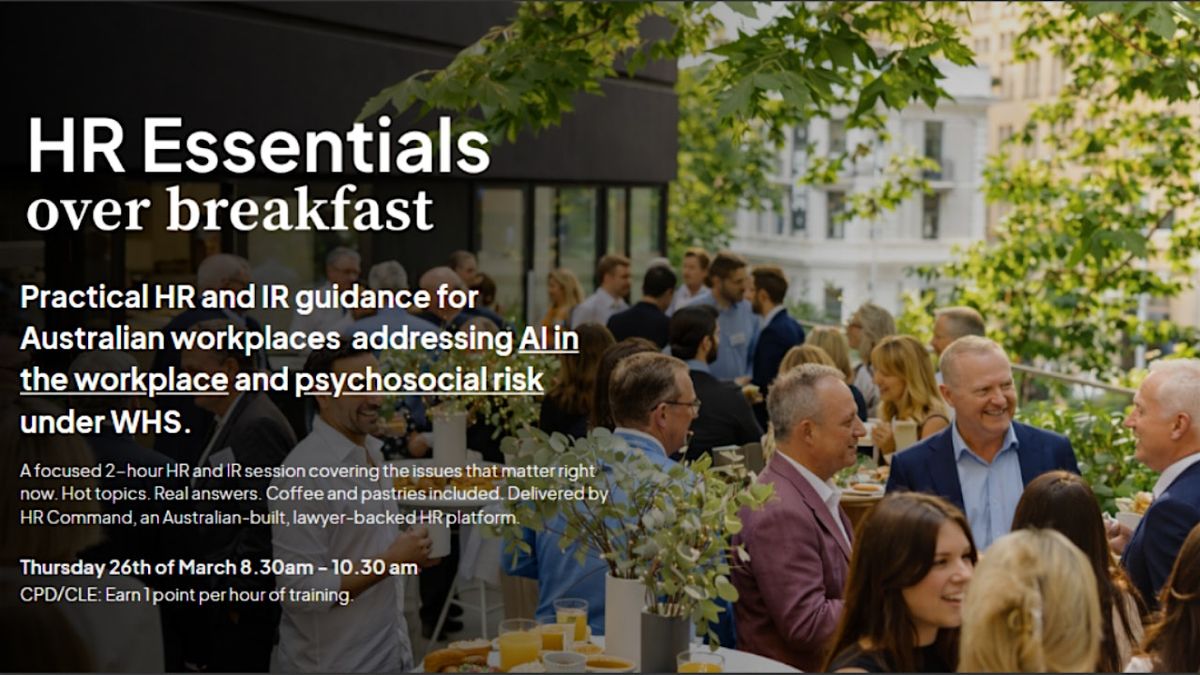 Introducing HR Essentials Over Breakfast by HR Command, a new event series built for Australian workplaces that want clear, lawyer-led guidance on the HR and IR issues that are creating real risk right now.