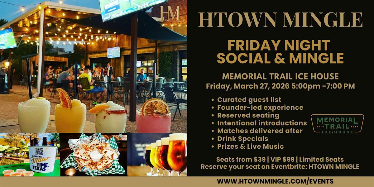 Join us for HTown Mingle™ Friday Night Social & Mingle at the Grand Opening of Memorial Trail Ice House—an elevated, relaxed, conversation-forward night designed for real connection (friendship, business, mentorship, and more).This is a public ticketed experience with a curated feel: you’ll check in, get oriented, and then mingle intentionally—without the noise or awkwardness. At 7:00pm, the live cover band begins, and guests are welcome to stay and enjoy the venue’s full weekend programming.