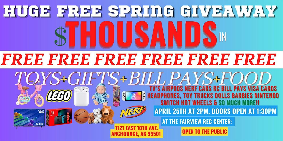 We want to give back to the community and spread JOY. W e are giving away THOUSANDS of dollars worth of free toys, bill pays, TVs & MORE! ALL FREE! & OPEN TO THE PUBLIC