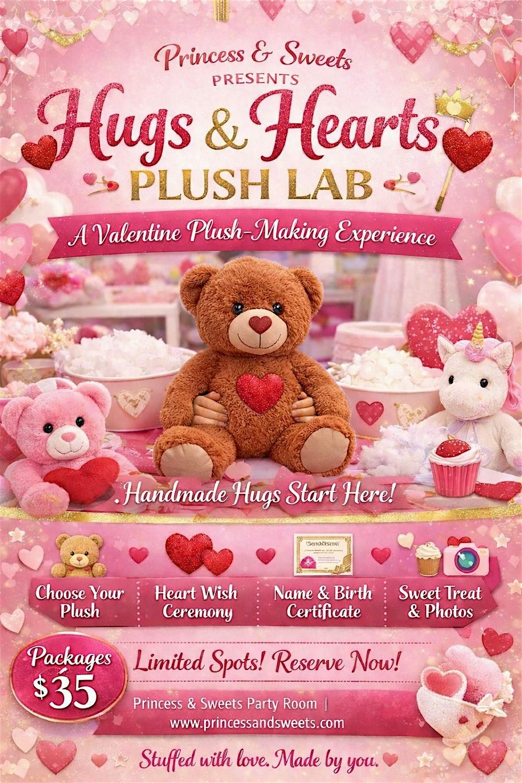 Get ready for a heartwarming Valentine experience at Princess & Sweets Hugs & Hearts Plush Lab is an interactive plush-making workshop w