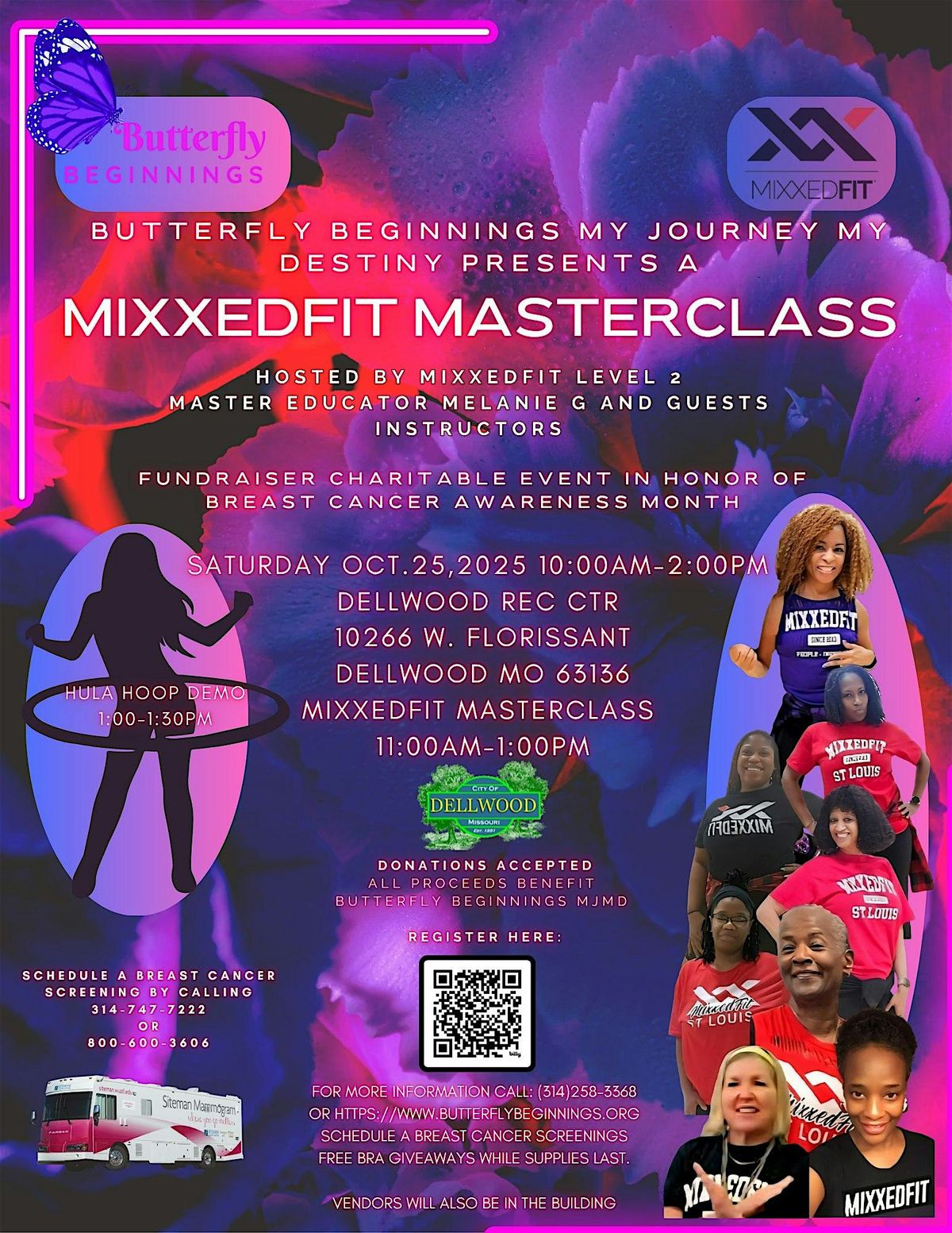 Butterfly Beginnings My Journey My Destiny presents a Mixxed Fit Masterclass. A fundraiser charitable event in honor of breast cancer awareness month. Join us for a high-energy MixxedFit Masterclass—where dance meets fitness, community, and the cause! There will be hula hoop fun, health screenings, holistic vendors, and other fun activities! Let’s dance, laugh, and lift one another in support and strength. Donations are welcome, and proceeds go to support breast cancer awareness, education, and empowerment programs through Butterfly Beginnings My Journey My Destiny.