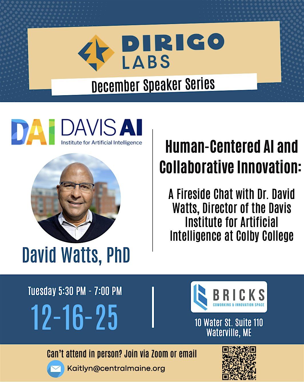 A fireside chat with Dr. David Watts, Director of the Davis Institute for Artificial Intelligence at Colby College.About this Event
