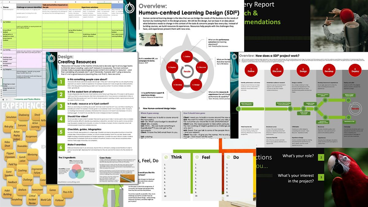 Hi! Thanks for finding your way here! Many organisations - big and small - have shifted to Human Centered Learning design approaches in the last couple of decades. They are using the tried & tested tools and techniques that make up the 5Di© model to make a measurable difference to experience & performance in their organisations. I am the chap who invented 5Di© (as published in How People Learn) and have run dozens of workshops for organisations wanting to upskill their learning & development teams.
