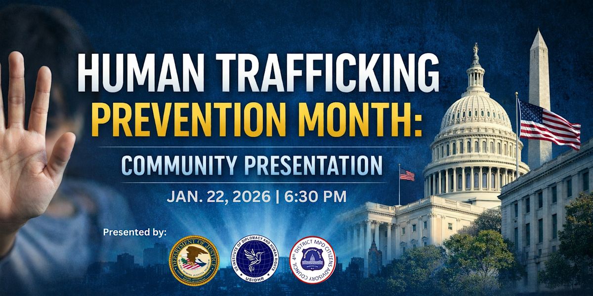 In honor of Human Trafficking Prevention Month, the United States Attorney’s Office for the District of Columbia is hosting a major community presentation to equip residents with practical knowledge and tools to help prevent trafficking and exploitation.