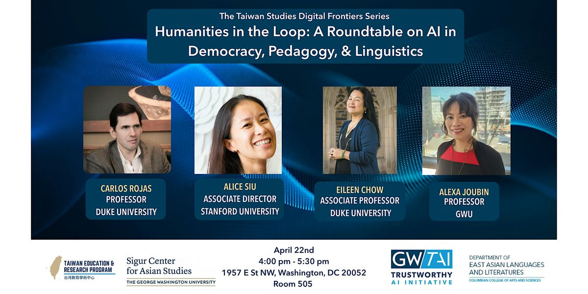 Co-sponsored by: The Taiwan Education & Research Program, the Sigur Center for Asian Studies, the GW Trustworthy AI Initiative (GWTAI), and the Department of East Asian Languages & Literatures