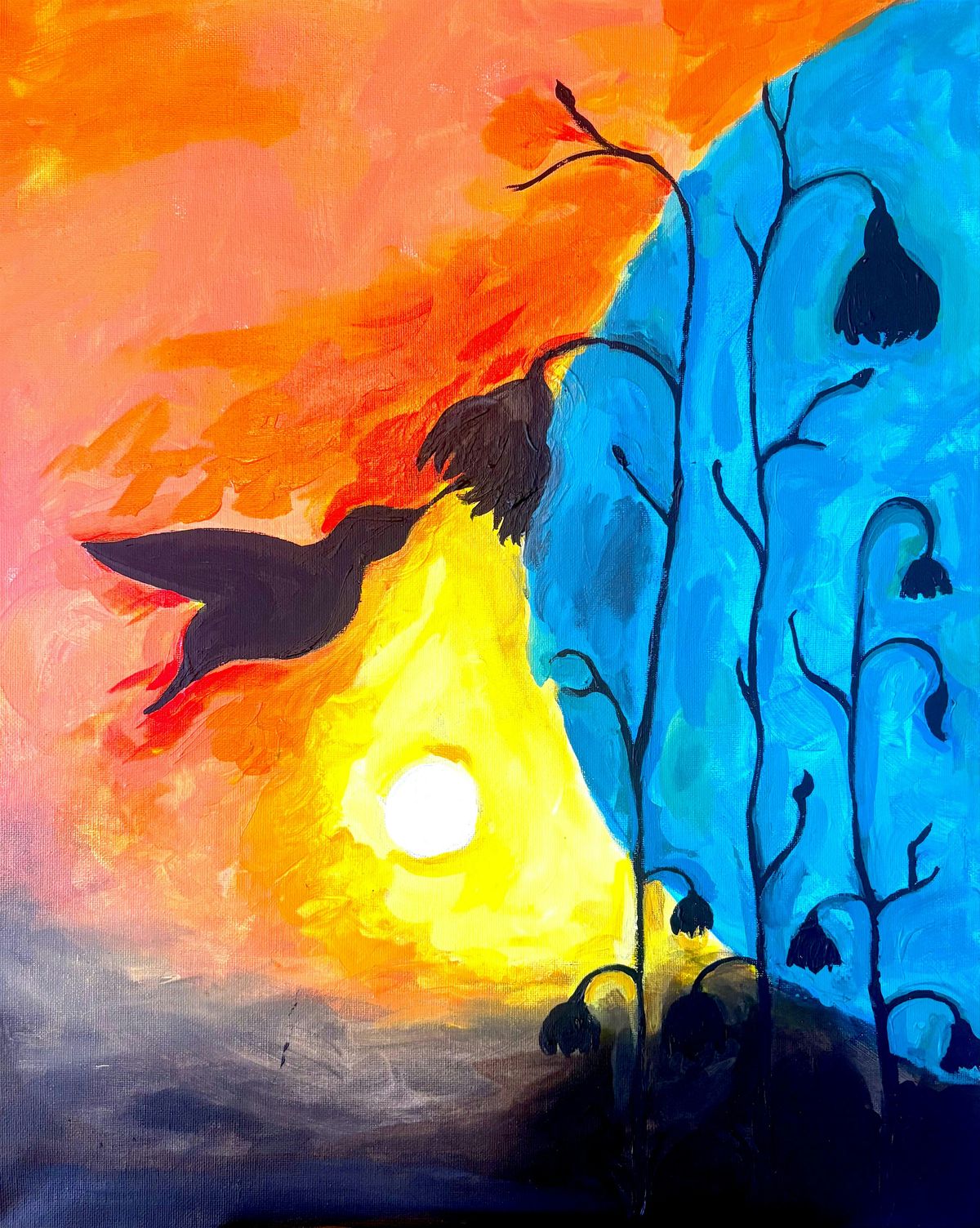 Join us in person for a chill evening of creativity and fun! Capture the magic of a hummingbird at dusk while you sip your favorite drink. Whether you're a pro or just here to relax and paint, this event is all about good vibes and great art. Bring your friends or come solo – either way, it’s a perfect way to unwind and make something beautiful. Don’t miss out on this cool Paint and Sip experience in Kansas City!
