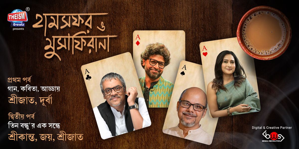 three friends—Srikanta Acharya, Joy Sarkar, and Srijato. This segment celebrates