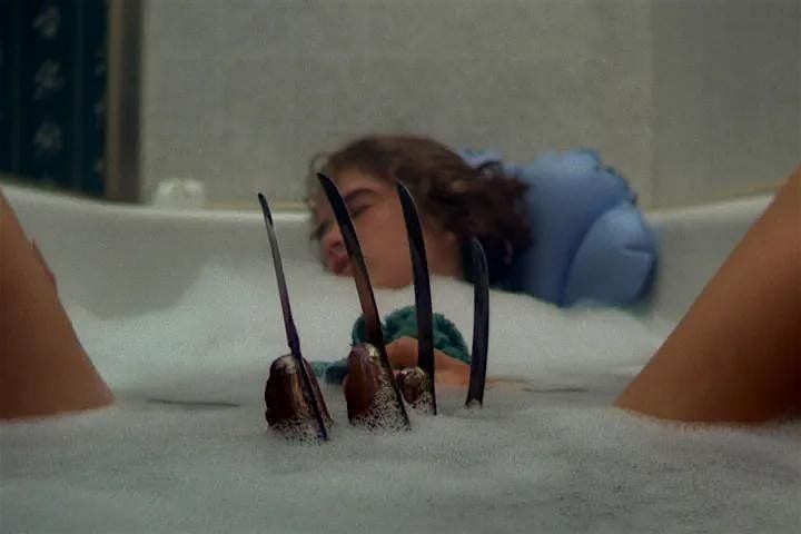 The night begins with A Nightmare on Elm Street, in which a group of teenagers are haunted in their dreams by Freddy Krueger, a burned killer who was hunted down and killed, only to return in sleep. Stay awake and you’re safe. Fall asleep and you’re his. As exhaustion takes hold, the boundary between nightmare and reality begins to break down.