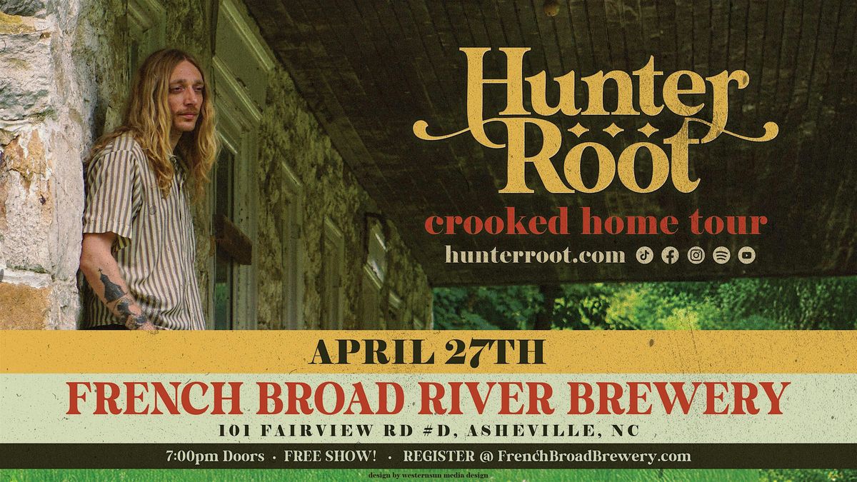 Come on out Monday April 27th at 7PM for a FREE SHOW featuring Hunter Root on the French Broad River Brewery Indoor Stage!