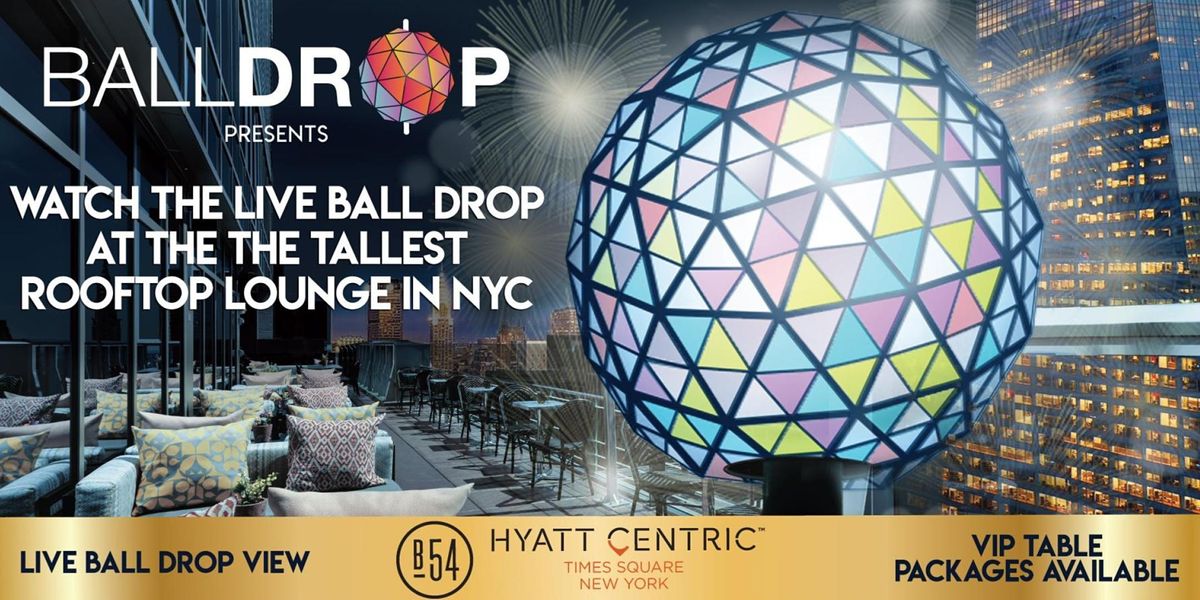 Experience the world-famous Ball Drop Live from the tallest Rooftop lounge in Manhattan! Perched atop the 54th floor of the Hyatt Centric Times Square our New Year's Eve gala at Bar 54 will offer stunning one-of-a-kind views of the Manhattan skyline and of course direct views of the Ball Drop!
