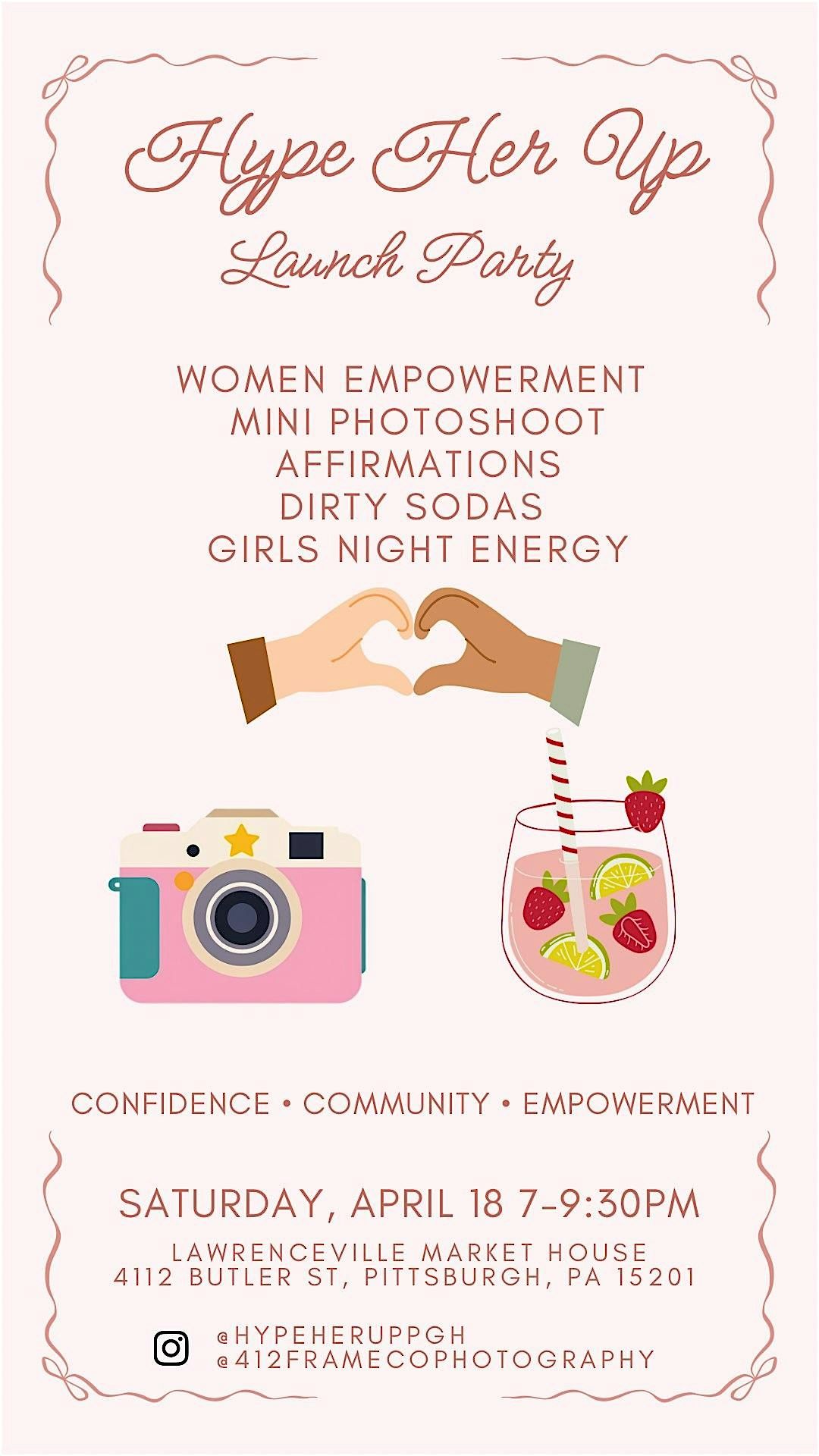Hype Her Up is officially launching, and you’re invited to celebrate! This night is all about connection, confidence, and empowering women to show up as their most authentic selves. Enjoy a mini photoshoot to capture your glow, sip on fun dirty sodas, create an affirmation card, and meet an incredible group of women who believe in cheering each other on. Come ready to hype yourself up—and each other.