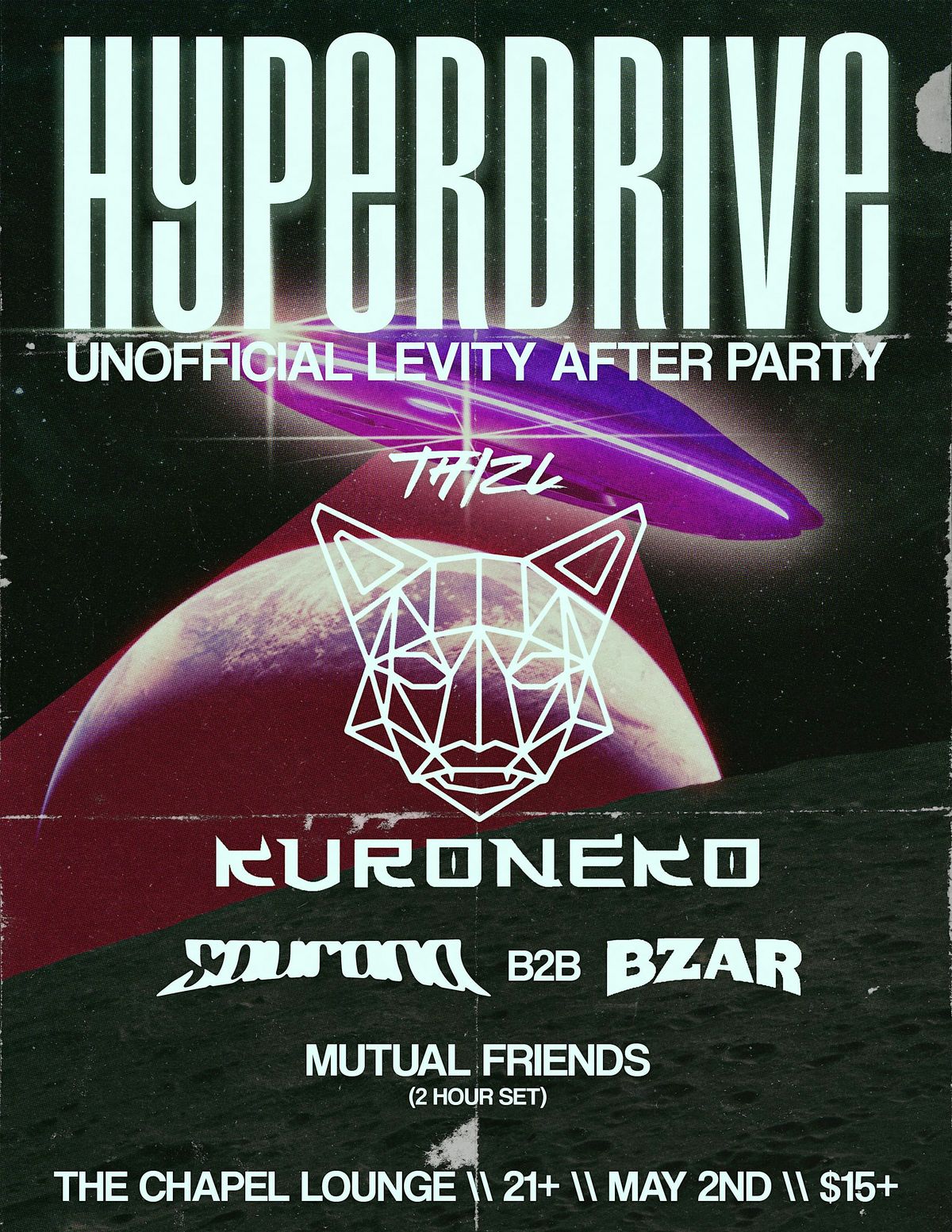 Hyperdrive: Unofficial Levity afterparty at The Chapel Lounge, only a 10 minute walk from Wamu Theater! $15 online $20 door 11pm-4am May 2nd