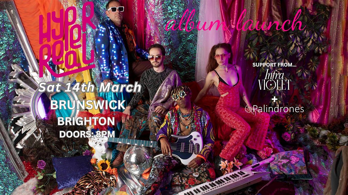 Hyperreal: "…Imagine an Electrifying Fusion of Futuristic SynthPop, Shoegaze guitars, DreamPop & Cosmic Lush Synths from the year 9000, in Los Angeles, in dazzling colourful outfits, & elevated by a Black Gospel Soul Choir..."