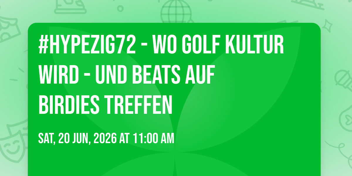 Golf war gestern ein reiner Clubsport. Am 20. Juni 2026 wird es in Leipzig zu mehr: Golf wird Kultur. #Hypezig72 bringt 72 Spieler:innen, Streetwear Labels, DJs, lokale Kreative und einen ikonischen Golfplatz zusammen – in Leipzig, an einem Tag, der so hier noch nicht stattgefunden hat. Get2Gether am am Morgen, Turnier am Tag, Party am Abend, Community Courts auf dem Green, spannende Gespräche und eine gute Zeit den ganzen Tag. Du spielst 18 Holes im Scramble Modus zwischen kuratierten Ständen aus der Leipziger Kreativ-Szene, triffst Menschen, die Golf genauso verstehen wie du: nicht als Privileg, sondern als kulturellen Playground.