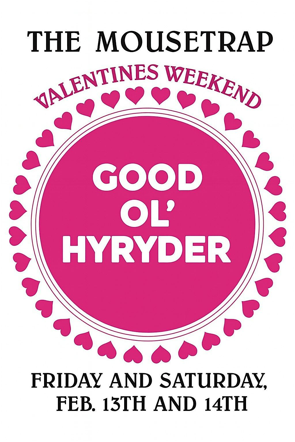 Come join us at The Mousetrap for a Grateful Valentines weekend with Hyryder! Get ready to get down to the Best Grateful Dead Tribute Band in all the Land!