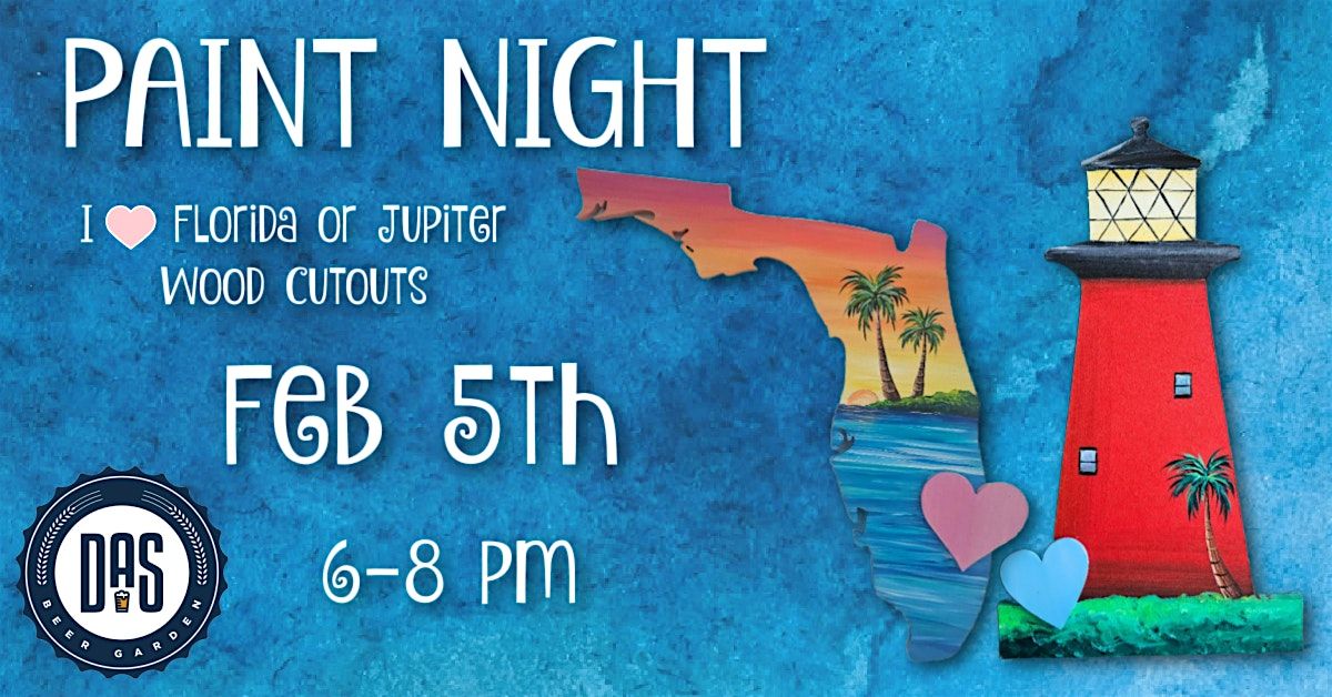 Welcome to I ❤️ Jupiter or FL Wood Cut Out Paint Night happening at DAS Beer Garden on February 5, 2026 at 6:00 PM (Eastern Time)! Get ready to unleash your creativity and paint your very own Jupiter or Florida themed wood cut out. No experience needed, just bring your enthusiasm and we'll provide all the materials. Let's have a fun and relaxing evening filled with art and good vibes. See you there!