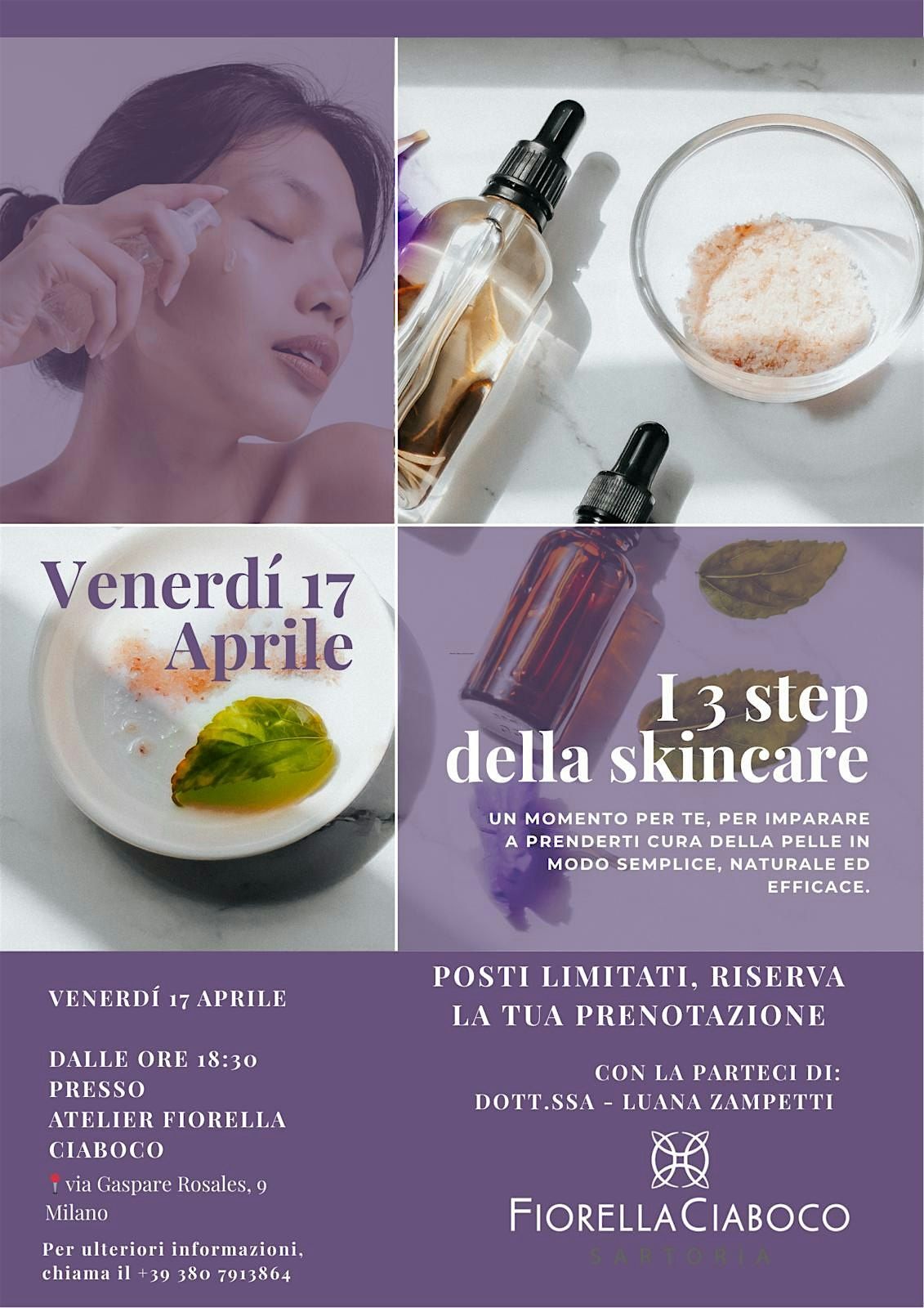 Vuoi una pelle luminosa e sana? Vieni al nostro evento in presenza dove ti sveleremo i segreti dei 3 passaggi fondamentali per una routine skincare perfetta. Un momento informale e super utile, pensato per chi vuole imparare a prendersi cura di sé in modo semplice e veloce. Ti aspettiamo per condividere consigli, trucchi e prodotti top!