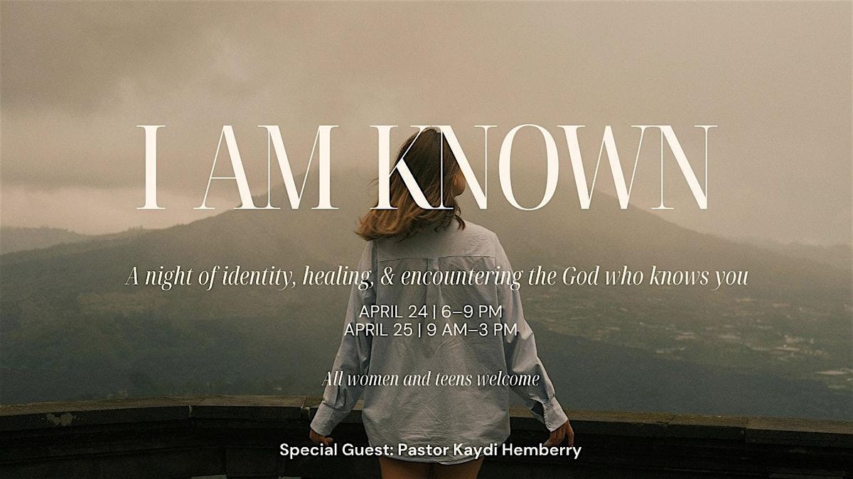 You are invited to I AM KNOWN, a powerful women’s encounter designed to create space for identity, healing, and connection with God.
