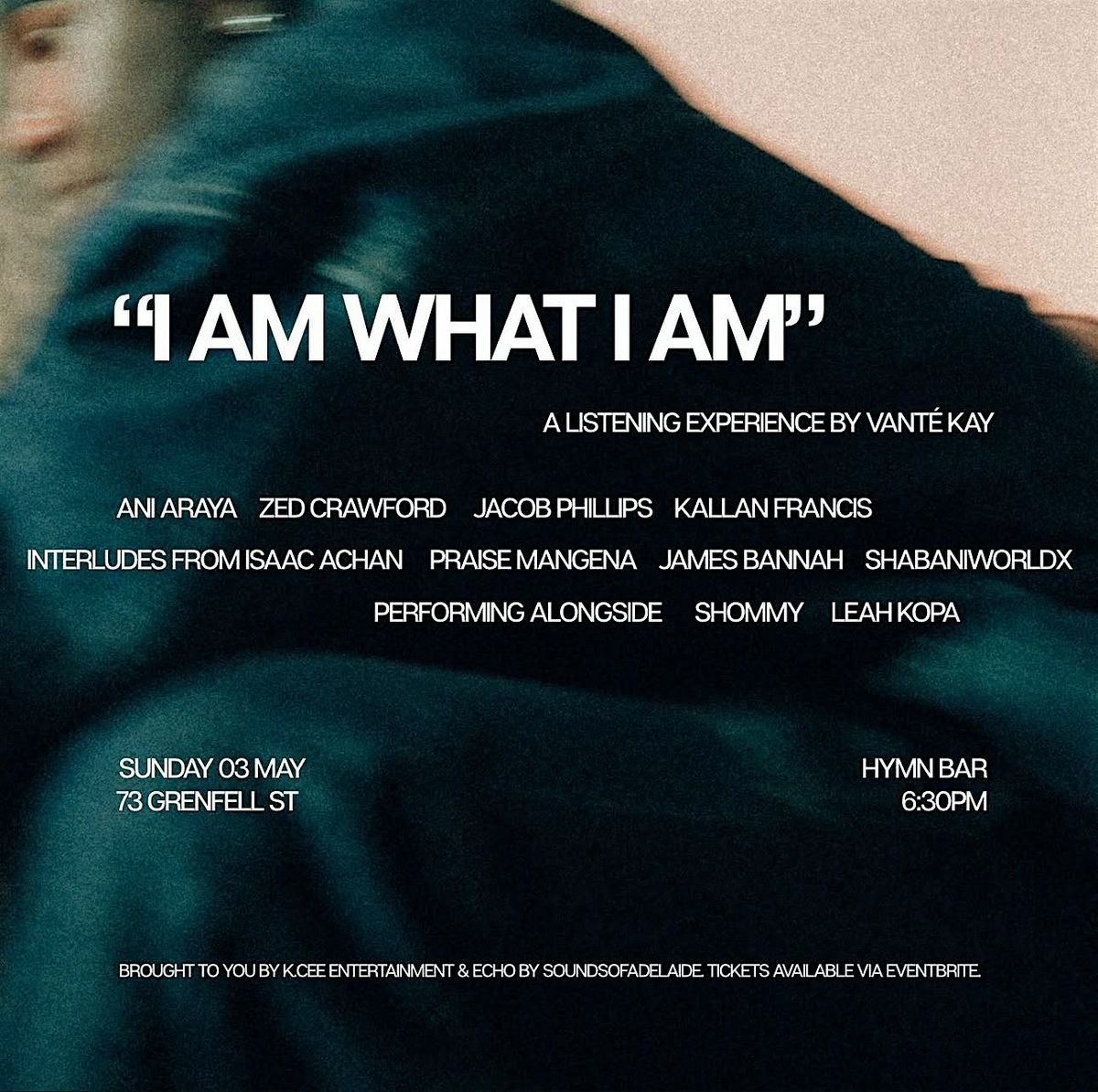 Led by Vanté Kay, the night will feature a lineup of talented artists including Ani Araya, Zed Crawford, Jacob Phillips, and Kallan Francis, alongside powerful interludes from Isaac Achan, Praise Mangena, James Bannah, and ShabaniWorldDx. The experience is further elevated with performances alongside Shommy and Leah Kopa.