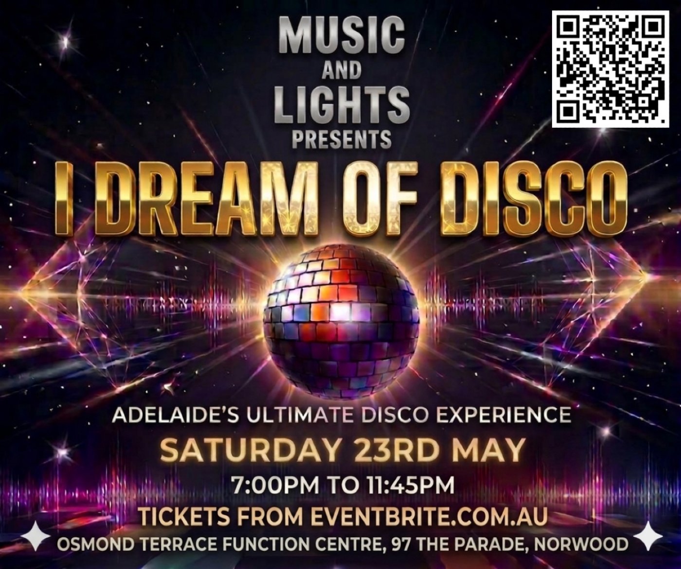 I Dream of Disco launches its first night in Norwood on Saturday 23rd May, 7:00pm to 11:45. Forget the city clubs and join us at the Osmond Terrace Function Centre, Norwood Hotel, for a night of pure disco nostalgia. If you're 30 years or older then this will be the party of the year! Great venue, great location and great music from the 60's, 70's and 80's. Anythings goes and we are playing Motown, Disco, Pop and Rock classics through the decades. Retro lighting effects with plenty of good quality sound. Whether you’re coming with friends or on your own, it’s a great way to meet people, have a laugh, and dance to the music you love. Please come in your best fancy dress and don't forget to tell all your friends and link us to your social media pages. Your DJ for the night is Dale Martyn, who started his music career in the Uk nightclubs in 1982, so has plenty of experience! Easy Parking and a bar menu is available if you're feeling peckish.