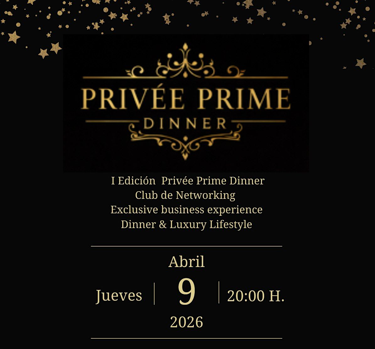 Te invitamos a Privée Prime Dinner,una experiencia exclusiva que reúne networking de alto nivel, gastronomía, arte, moda,cultura y espectáculo, en una velada diseñada para conectar a personas influyentes en un entorno premium.