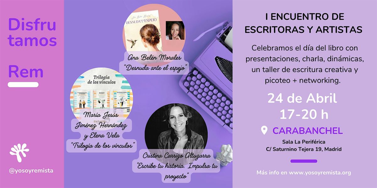 Con motivo del Día del Libro 📚, te invitamos al I ENCUENTRO DE ESCRITORAS REM, una jornada abierta donde cuatro artistas van a compartir su obra, conectar con otras emprendedoras y acercar su creatividad a la comunidad.