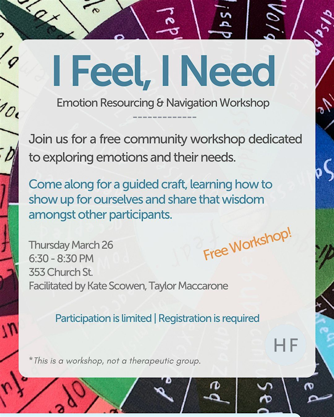 Join us for a free in-person workshop where we will explore feelings and needs, make flipbooks, learn from each other, and get help navigating the mental health care system.