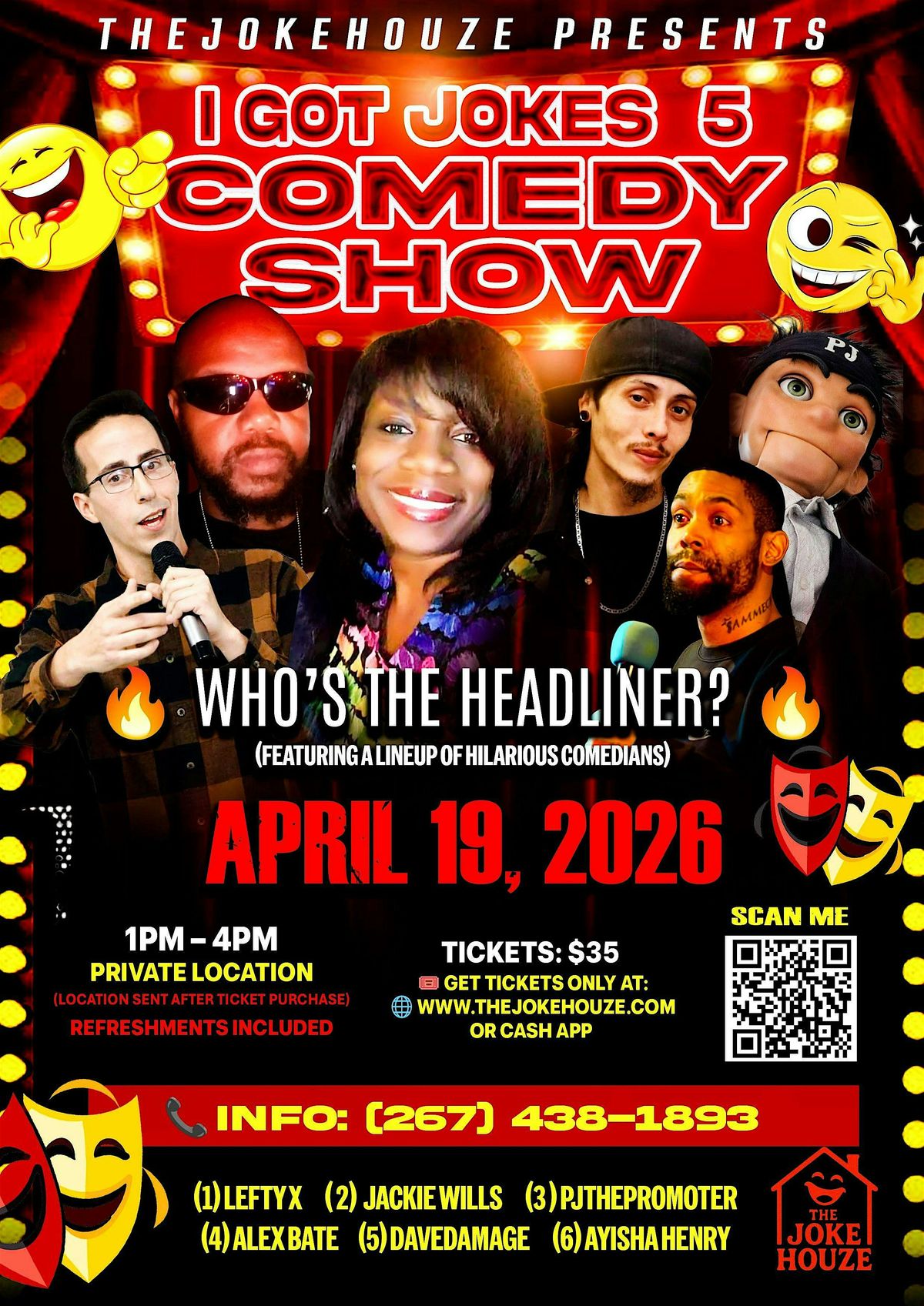 Get ready for an afternoon of nonstop laughs at I Got Jokes 5 – Who’s The Headliner? This unique comedy showcase brings together a lineu