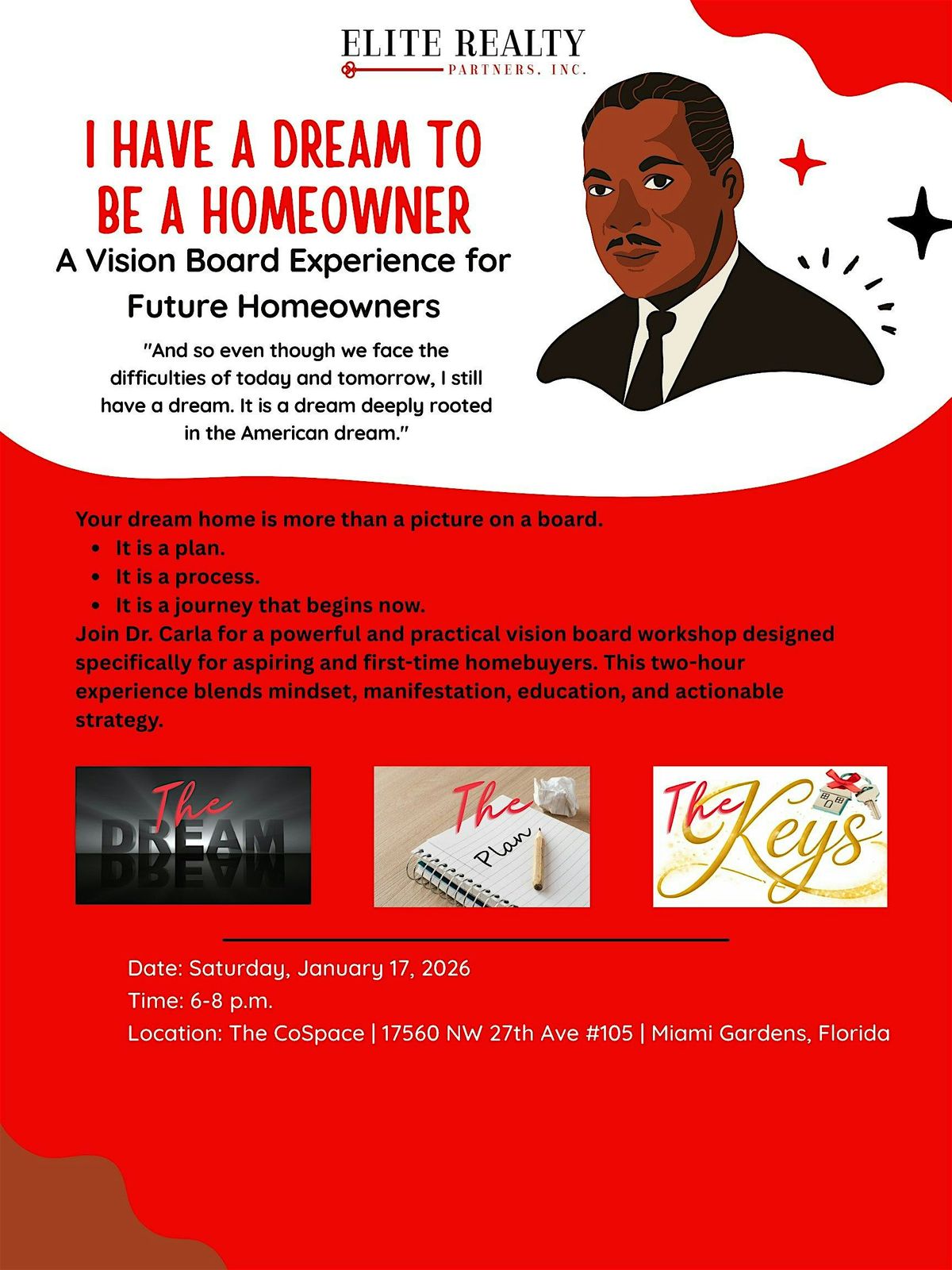 Join Dr. Carla Bryan Sheard, Realtor and Real Estate Educator, for a two hour guided Homebuyer Vision Board Experience designed for aspiring and first time homebuyers in Miami Gardens and surrounding communities.