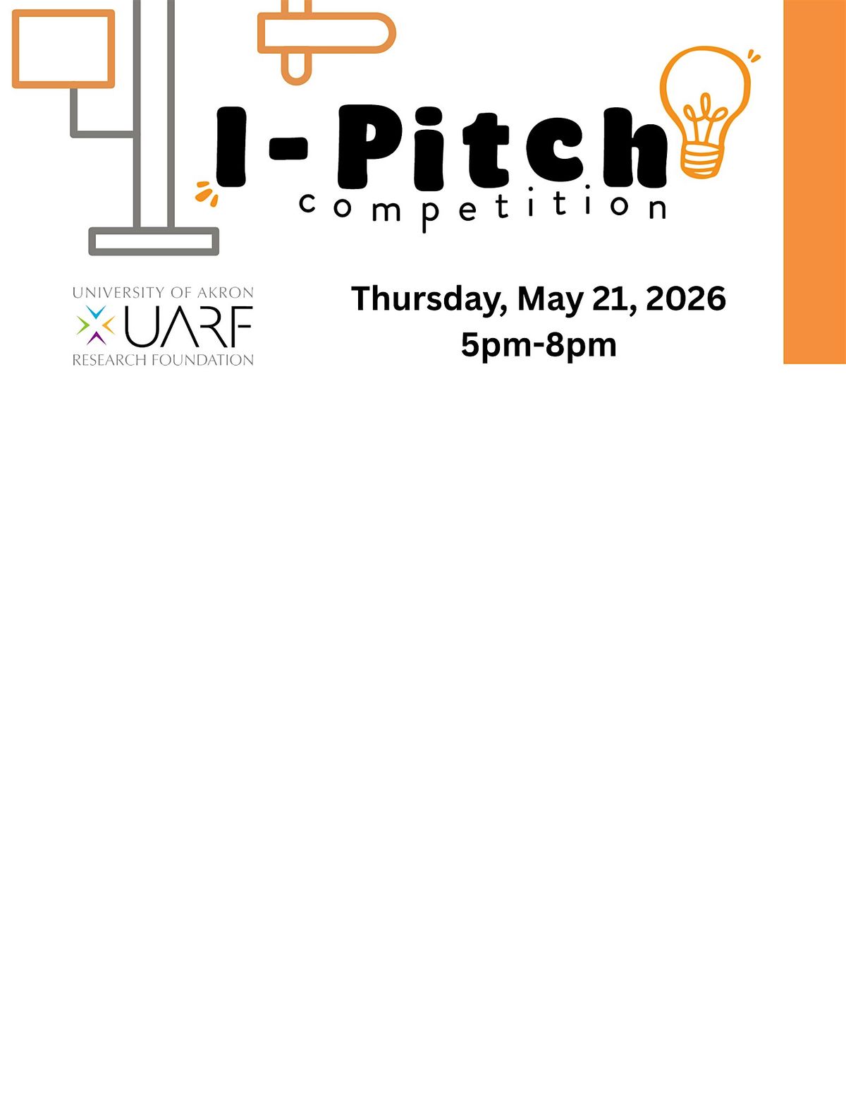 When: I-Pitch Competition will be held in-person on May 21st at the Bounce Innovation Hub in Downtown Akron.
