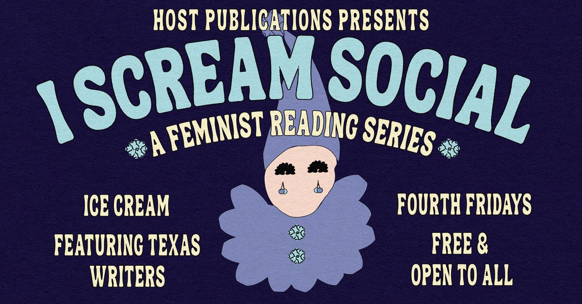 Presented by Host Publications, I Scream Social is a monthly feminist reading series and ice cream party that takes place at Alienated Majesty Books. We aim to celebrate and empower historically marginalized writers and share incredible literature and diverse perspectives to an Austin-area audience. Hosted by Host Publications editors Annar Veröld & Claire Bowman! Free & open to all!